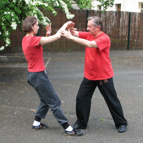 Les Mains collées permettent d'adapter nos techniques au partenaire . Le but des mains collées est de développer une synergie, une sensibilité telles que nous nous adaptons à l'énergie offensive du partenaire . Les Mains collées sont un apprentissage qui permet de coordonner techniques, positions pour déséquilibrer un partenaire.